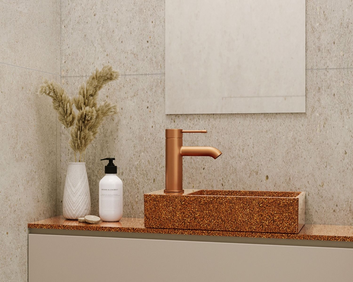 Due to the organic nature of our material, the colours and textures in our final products may vary slightly, which makes our washbasins and toilet products truly unique to your space.